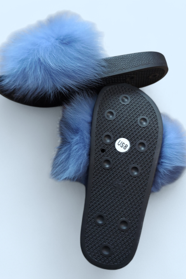 Claquettes en véritable fourrure de lapin – Bleu ciel