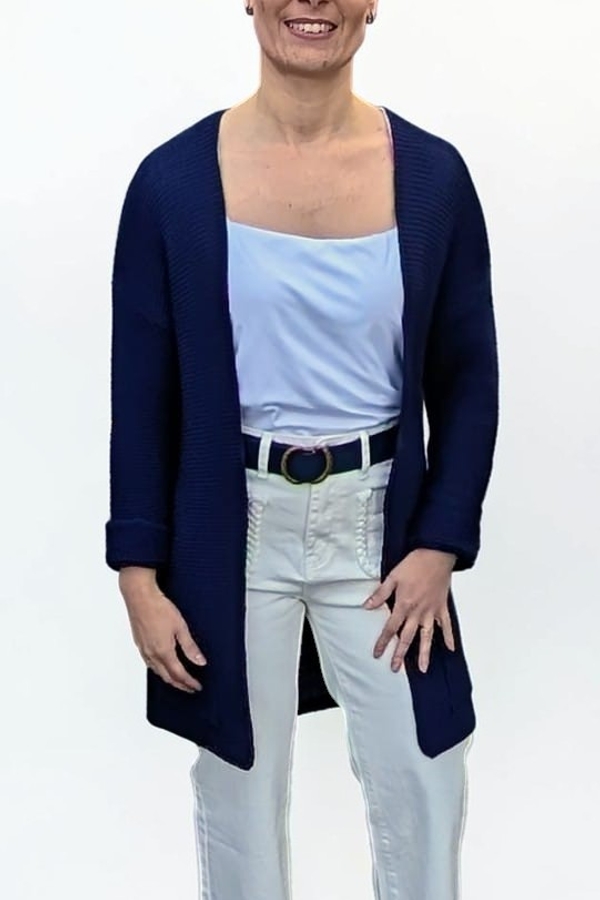 Gilet marine La Fée Maraboutée T36 – Élégance décontractée et confort intemporel